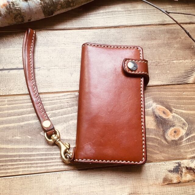 栃木レザー レザークラフト ハンドメイド 本革 ヌメ革 アイフォーン スマホケース 小物 ステーショナリ かわいい おしゃれ キャメル 肩がけ