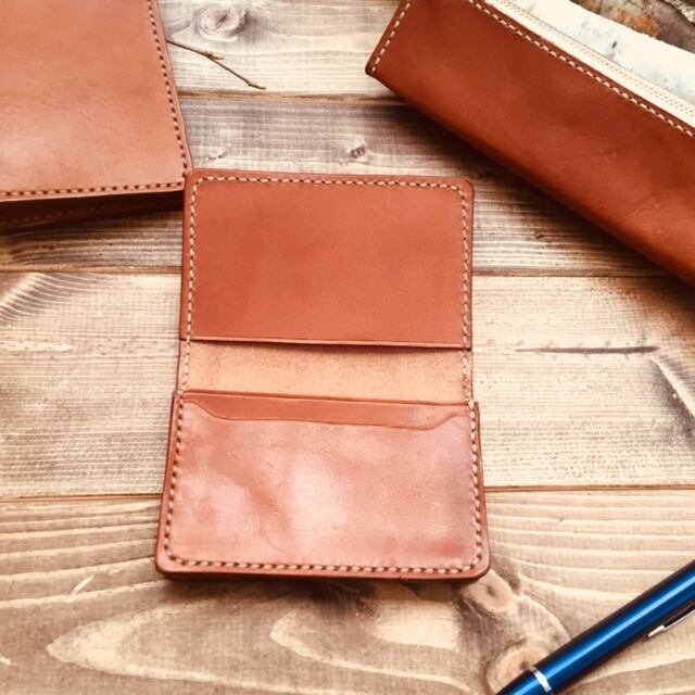 マチは2cm取ってありますので名刺20枚くらいは収容可能です。